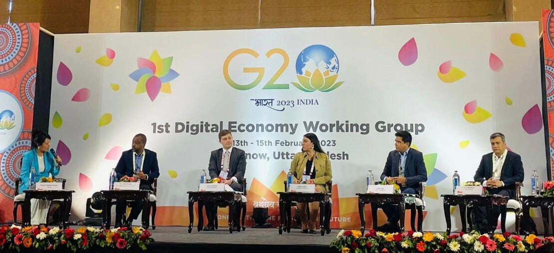 3. Viraj Tyagi from eGov participated at the 'Digital Public Infrastructure to Boost the Attainment of SDGs' side event at the 1st Digital Economy Working Group meeting under India's G20 Presidency in Lucknow. As part of its G20 Presidency, India is partnering with UNDP to advance a global vision for inclusive and sustainable digital public infrastructure driven by collective action.